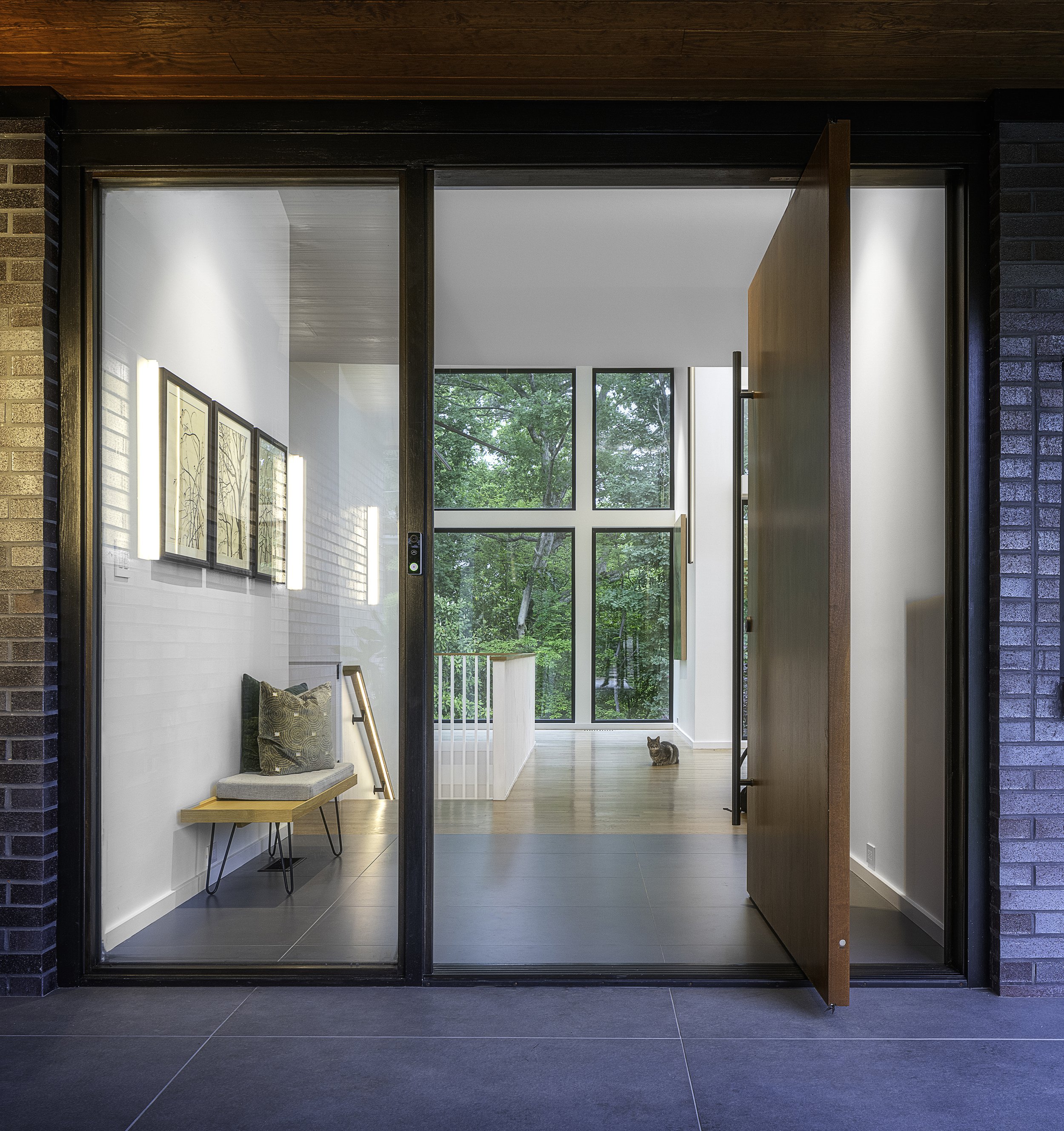 Kristen and Steve have two kids, two dogs, two cats and big plans for parties, gatherings, fundraisers, house concerts, dinners and more in their new house. Universal design principles play a major role in the layout of the house which allows for ultimate flexibility and welcoming spaces for all.