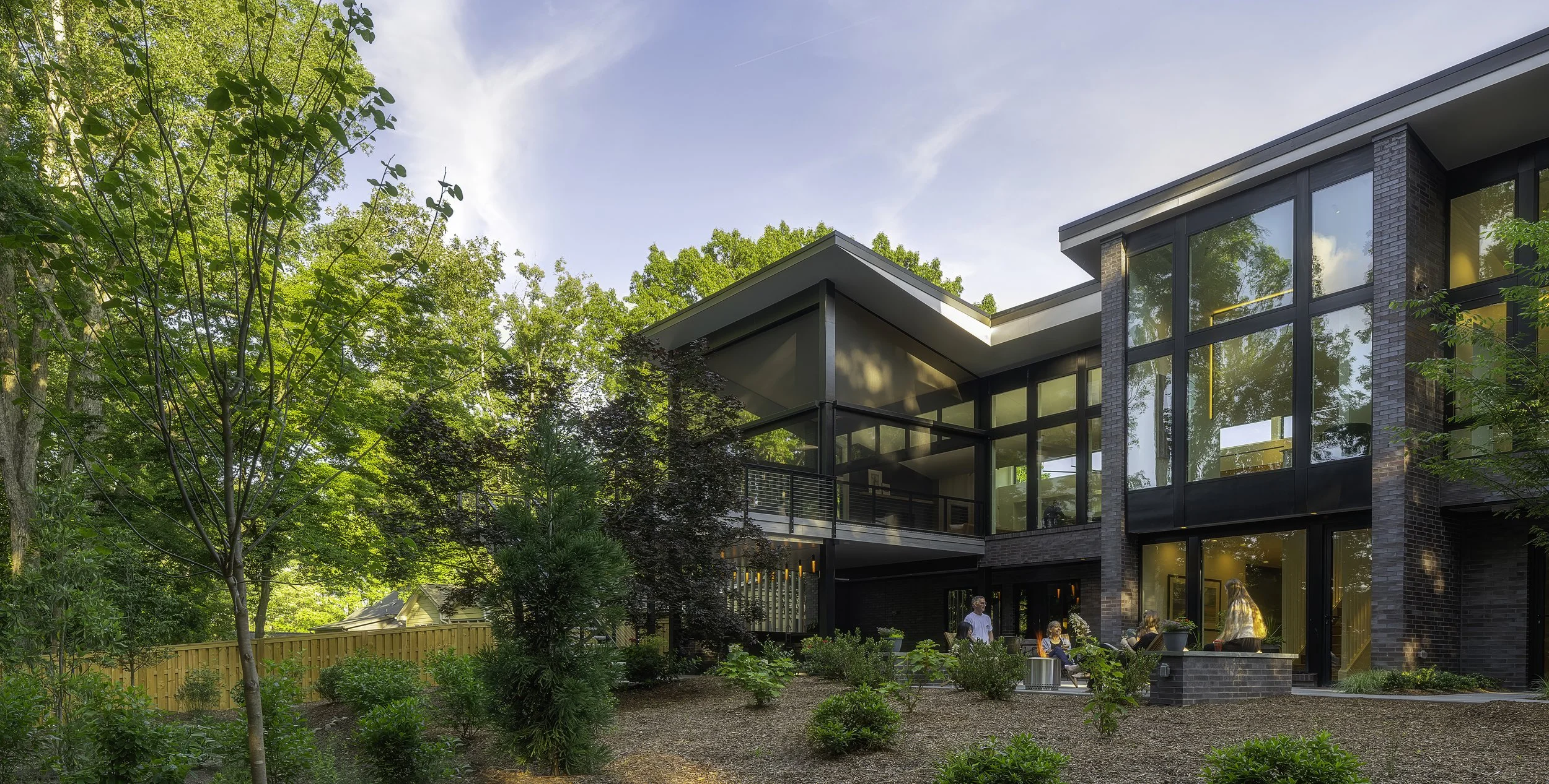 Greg Paul Builders built the dark grey brick house with solar panels and cisterns to water Kristen’s amazing landscape designed by Jennifer Wagner. Xylem fabricated and installed the millwork.
